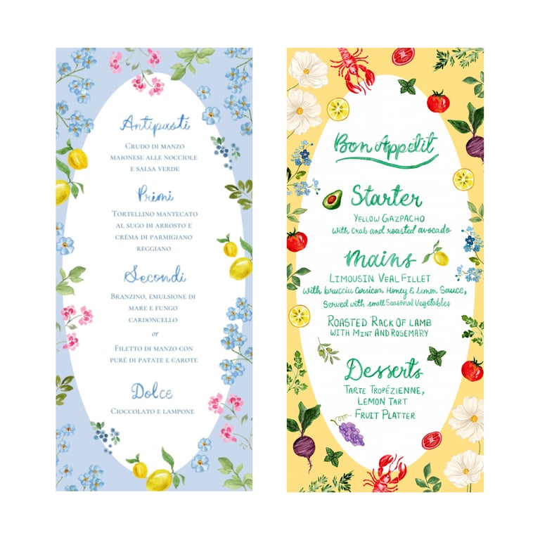 For weddings, I hand paint custom watercolor stationery, such as place cards, menu cards and other paper goods to make your celebration even more special and personalised.
